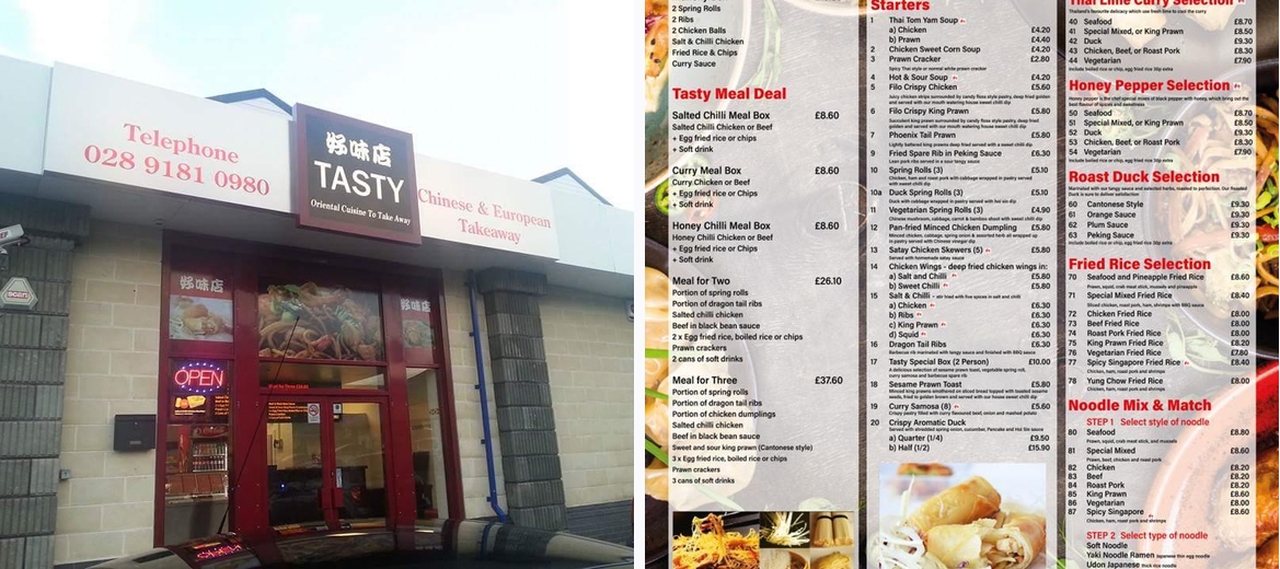 Tasty Oriental Cuisine is a hidden gem nestled in Newtownards, offering a delightful array of authentic Chinese dishes. Known for its quick service and flavorful offerings, this location has earned a loyal following among locals. The menu features a wide selection, catering to both traditional tastes and unique twists on classic dishes. With reasonable prices ranging from £10 to £20, it’s a great spot for families or anyone craving a late-night bite. The casual atmosphere and friendly staff make dining here an enjoyable experience whether you opt for take away or dine-in. Accessible and accommodating, Tasty Oriental Cuisine ticks all the boxes for a satisfying meal after a long day.
